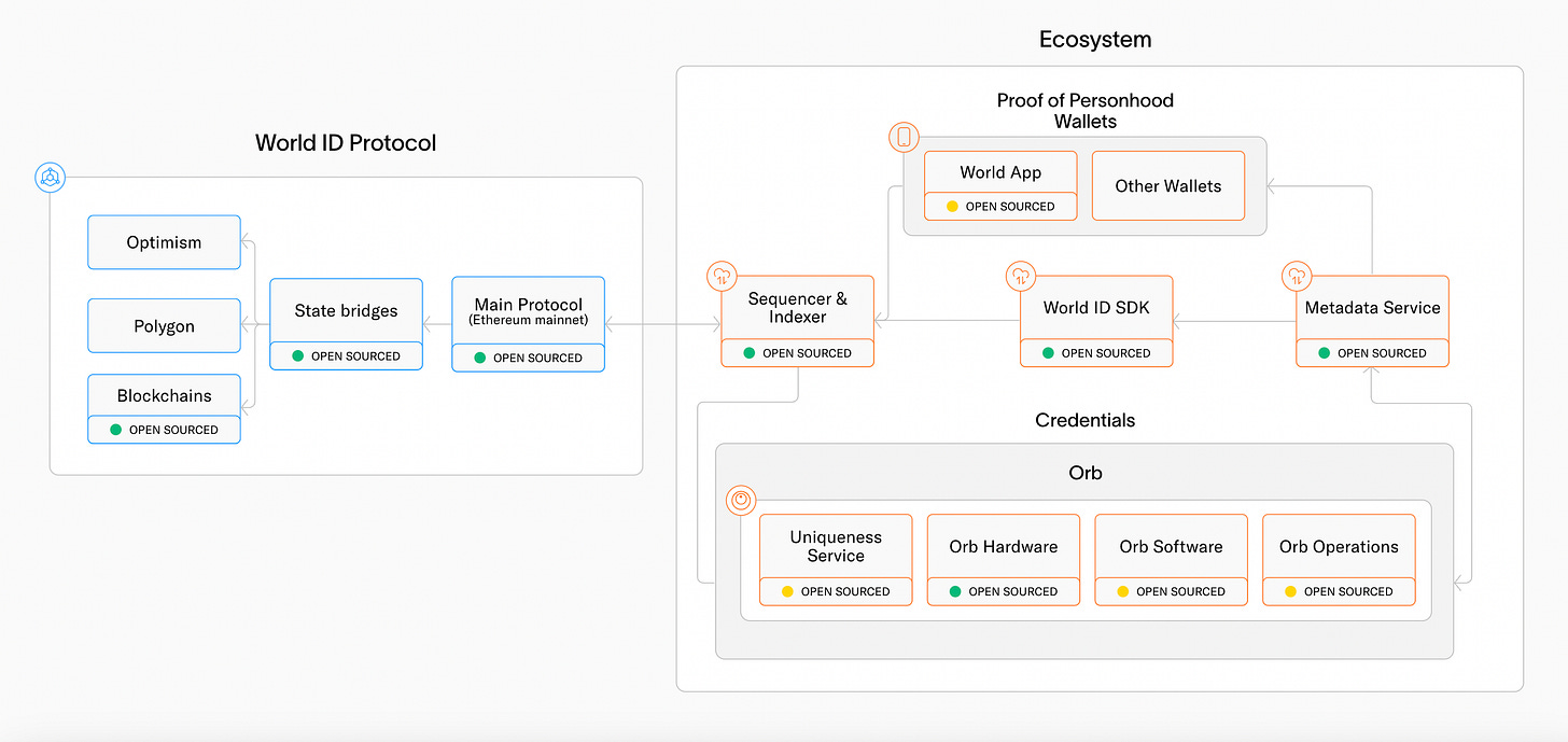 Worldcoin has 3 functioning pieces to its infrastructure: